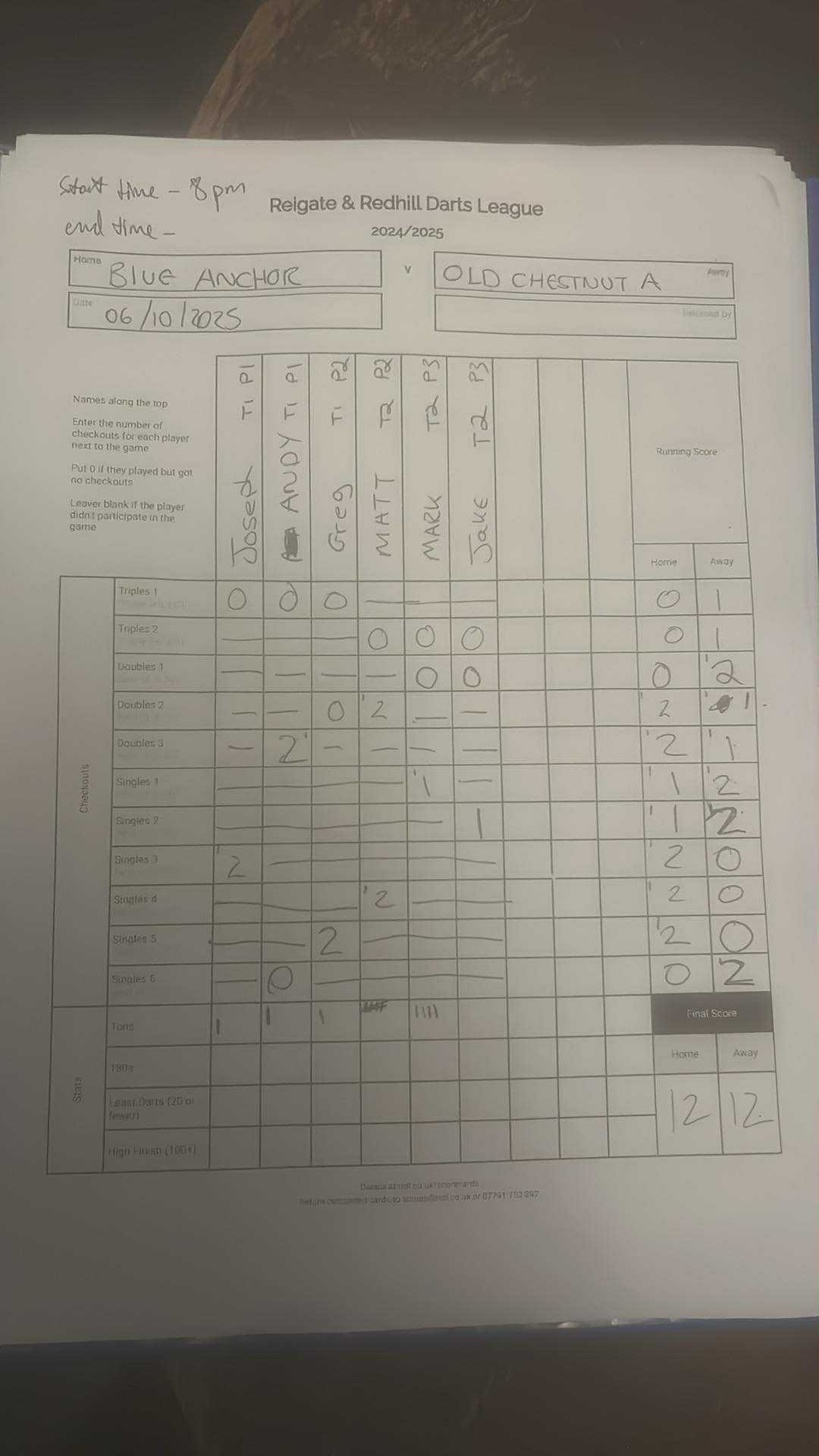 Blue Anchor | First warning | 6 Oct – missing player (third pairs) |