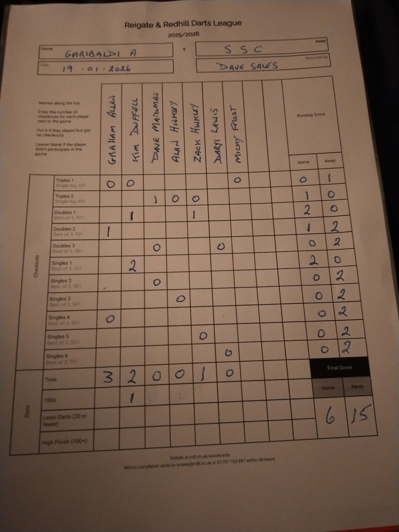 | Garibaldi A | First warning | 19 Jan – missing player (2nd pairs) |
